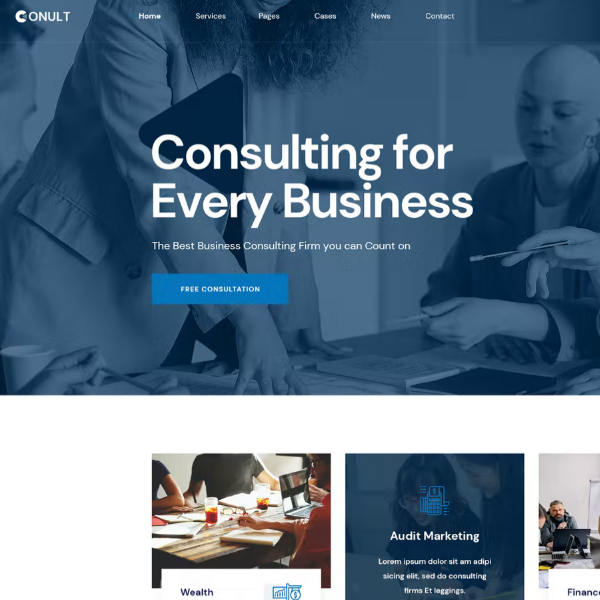 Kişisel veya ticari kullanım için her tür web sitesi için harika bir aday olan Conult’un kullanımı kolaydır ve son derece özelleştirilebilir.
